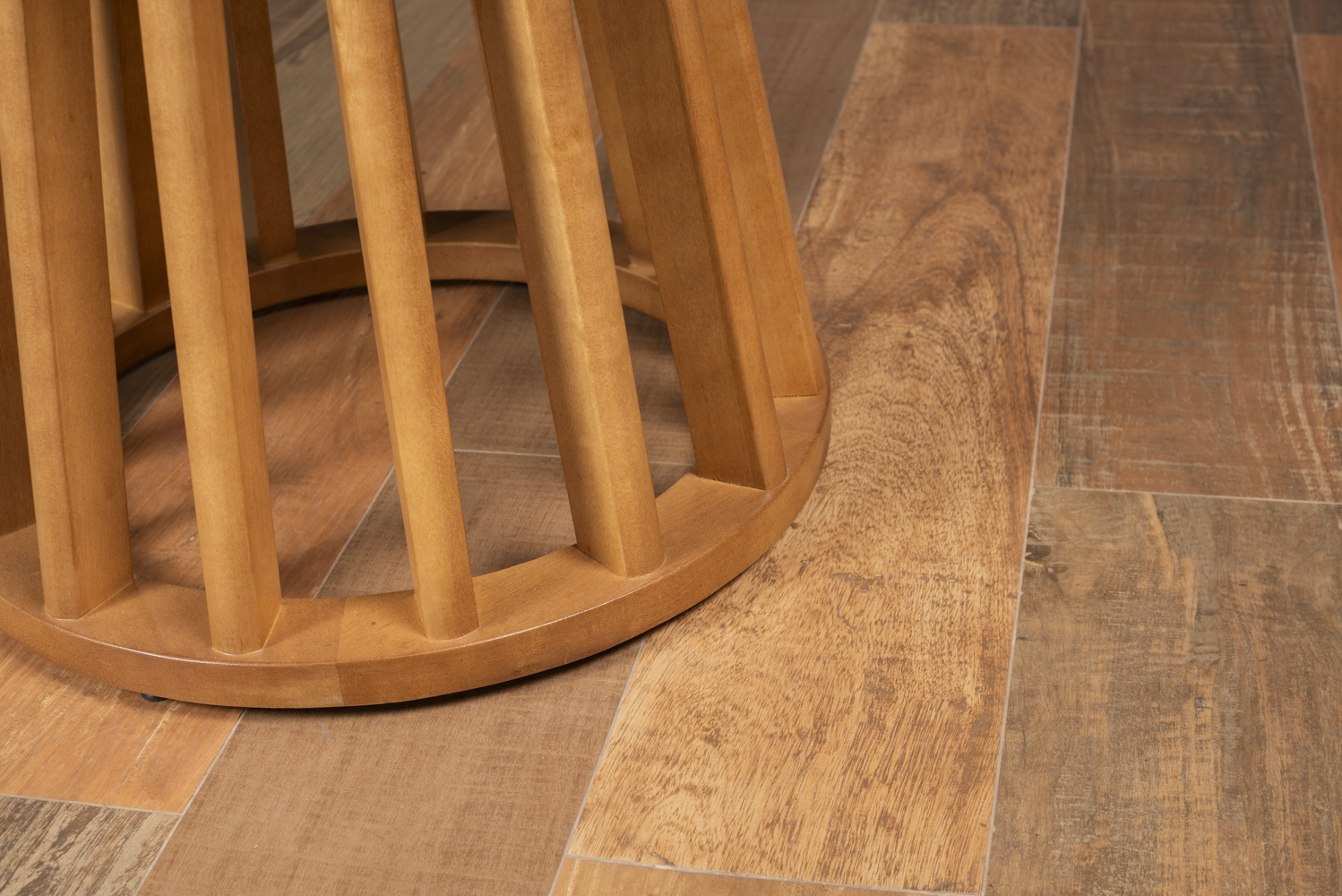 Acabamento Laminado de Alta Qualidade: O acabamento em madeira laminada não só realça a beleza da mesa, mas também garante durabilidade e facilidade de manutenção. A textura suave e o toque quente da madeira conferem sofisticação, ao mesmo tempo que tornam o produto resistente e prático.