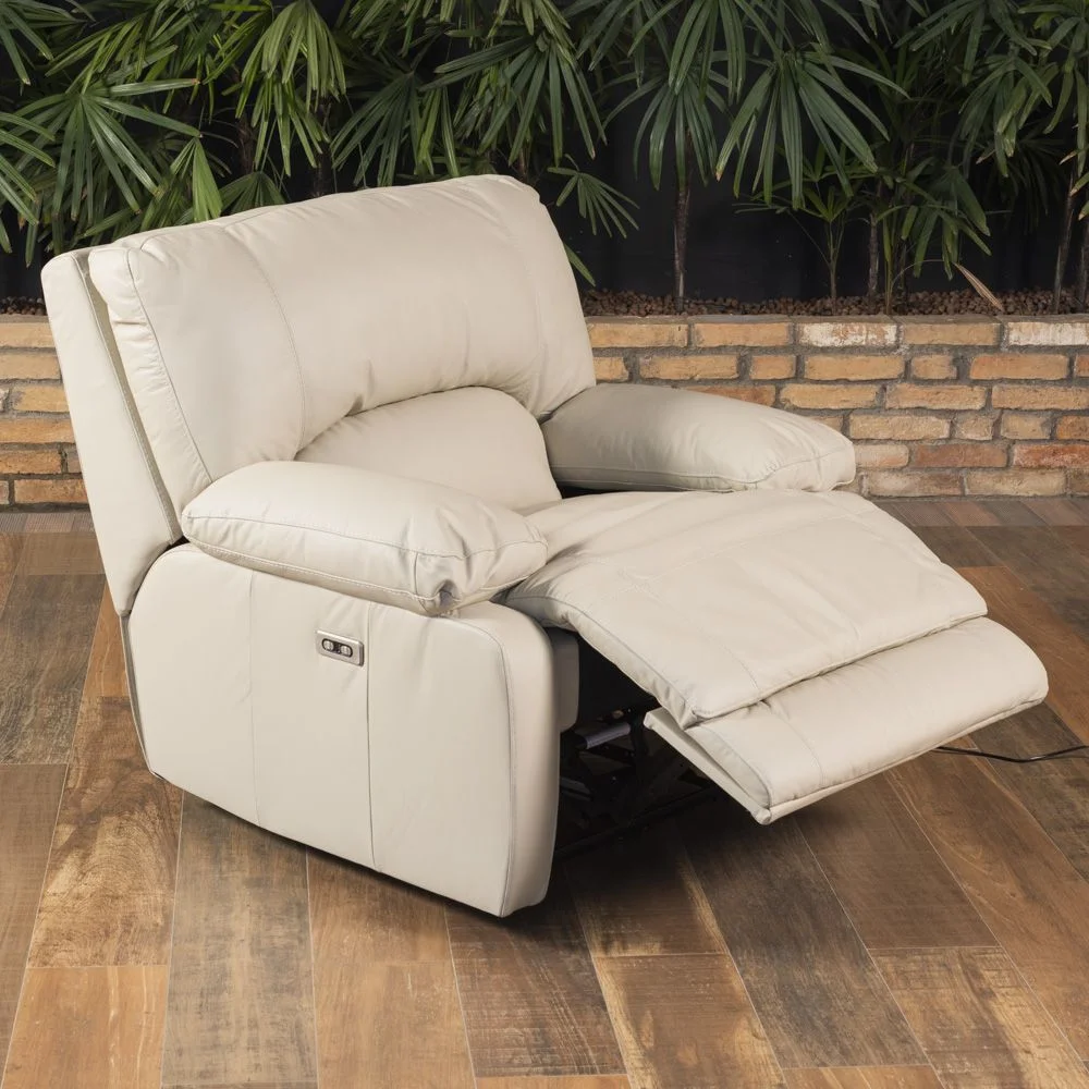 A Poltrona Cindy é a combinação perfeita de sofisticação, conforto e inovação. Revestida em 100% couro bovino legítimo, ela une a elegância do material natural com tecnologias avançadas para oferecer uma experiência única. Com sistema elétrico de assento retrátil e encosto reclinável, ela proporciona relaxamento completo. Sua estrutura robusta, composta por madeira tratada de Eucalipto, chapas de compensado naval e metal, garante durabilidade e resistência.